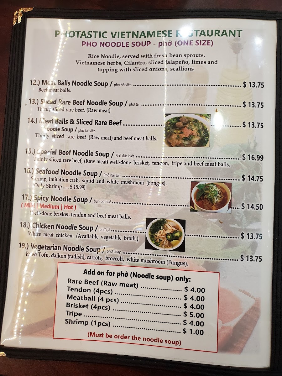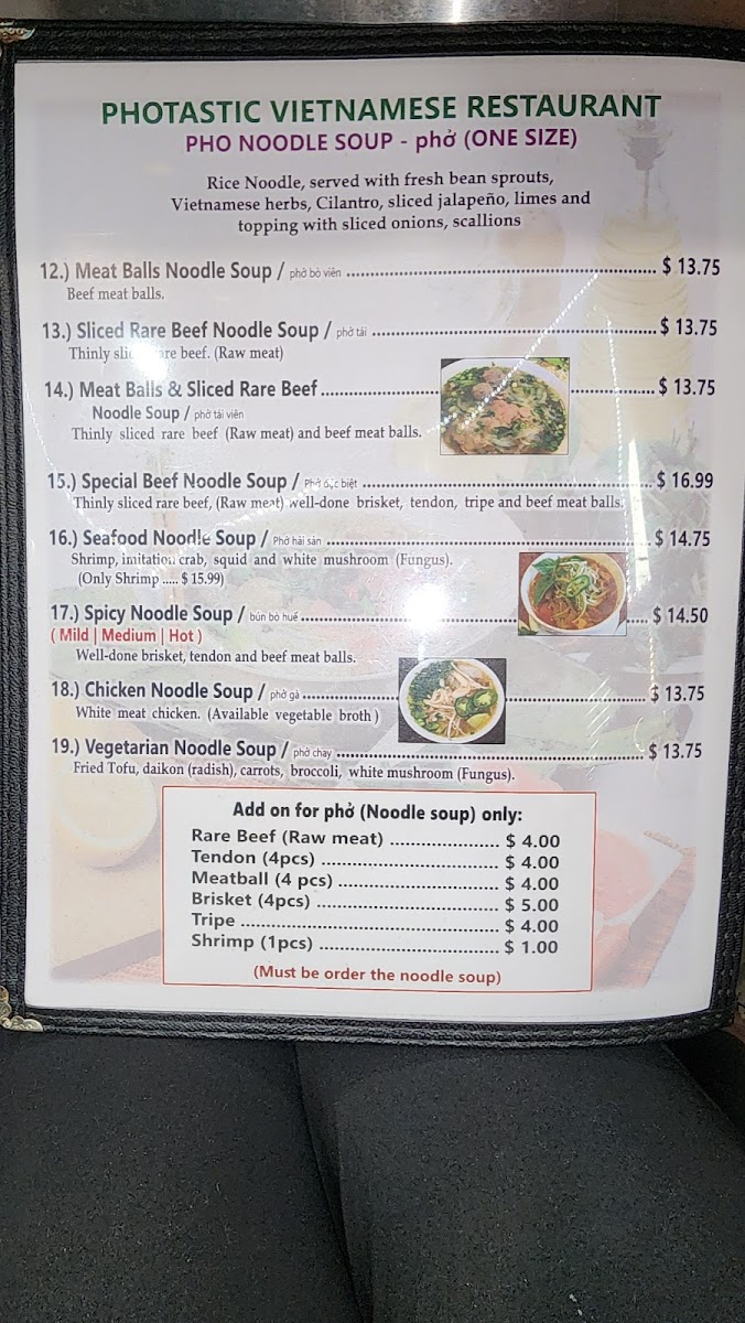 Welcome to Phở Photastic Vietnamese Noodle Soup, a culinary gem located in Vero Beach, FL. This vibrant Vietnamese restaurant offers a delightful array of authentic noodle soups that will transport your taste buds straight to Vietnam. From the classic Meatballs Noodle Soup and the rich Special Beef Noodle Soup to the fresh Seafood Noodle Soup, each bowl is a flavorful masterpiece, perfect for any palate.